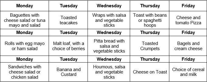 The menu for the After School Club is on a three-week rota and is subject to change at short notice.
