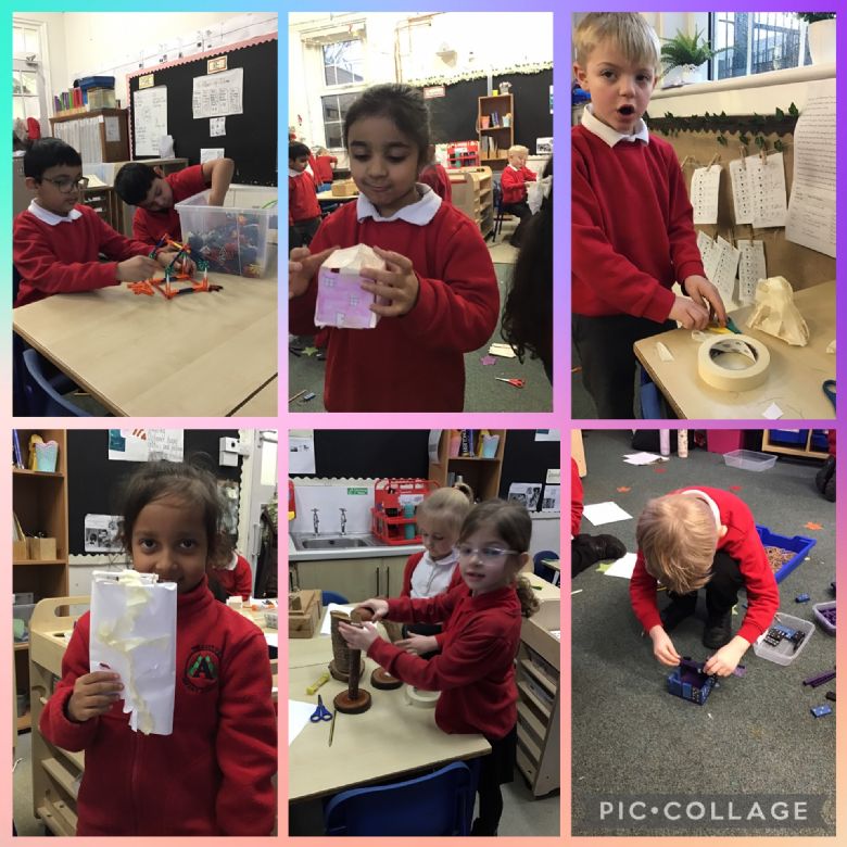 Yesterday in Science Hazel Class started learning about the suitability of materials. We used our story- The 3 little pigs to discuss the properties of materials and why some of the pig's houses fell down and others didn't. We then completed our own investigation using the materials in the classroom to try and find the most suitable material that couldn't be blown down by the mischievous wolf!